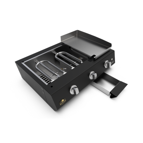 • Vysoký výkon: Tři výkonné nerezové hořáky s celkovým výkonem 9,6 kW zajistí rychlé rozpálení a precizní kontrolu teploty po celé ploše.