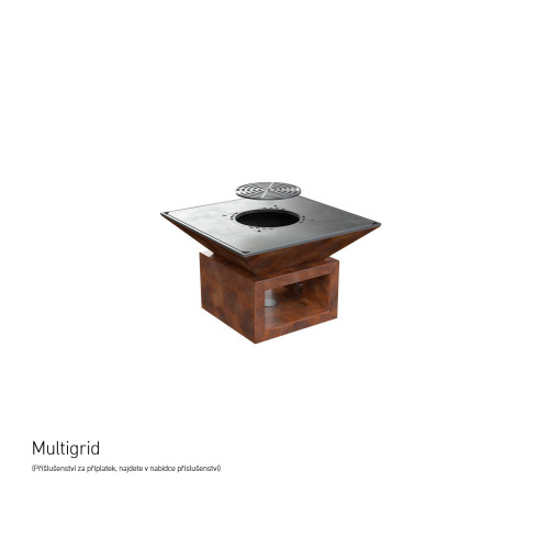 Gril Vulcanus Pro730 Camp má patentovaný design s tělem z patinující oceli COR-TEN. Vydrží jakékoliv venkovní podmínky a jeho topeniště je pro větší komfort při grilování vyložené akumulační vložkou. Přípravu jídla vám tak usnadní lepší cirkulace horkého vzduchu, tepelná stabilita a snížená spotřeba dřeva.