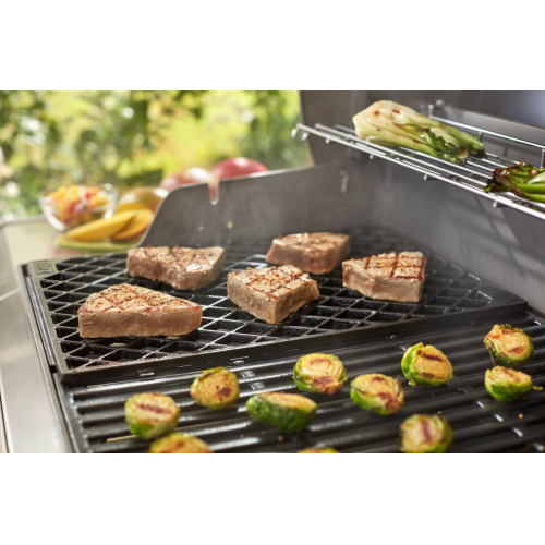 Dosáhněte dokonalého "steakového" výsledku jako v nejlepších světových restauracích. Litinový rošt Weber Sear Grate je určen pro grily Genesis II se 4 nebo 6 hořáky. Tento masivní rošt z porcelánem smaltované litiny se vkládá namísto jednoho roštu a je navržen tak, aby bleskově absorboval extrémní žár a předal ho přímo masu.