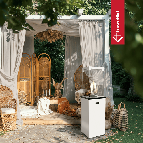 KRATKI Plynový ohřívač PATIO LIGHT přináší na vaši terasu, zahradu nebo balkon dokonalou harmonii tepla, světla a moderního designu. Tento jedinečný ohřívač nejenže spolehlivě prohřeje venkovní prostor, ale díky svému originálnímu vzhledu a fascinujícímu plameni se stane nepřehlédnutelným centrem každého setkání.