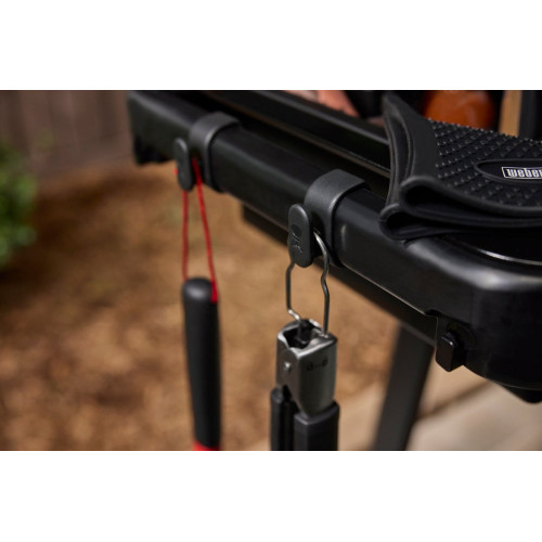 • Systém Weber Works: Unikátní modulární design umožňuje do stolku vložit různé doplňky, jako jsou krájecí desky, nádoby na led nebo košíky na koření (příslušenství se prodává samostatně).