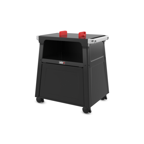 Horní lišty vozíku disponují integrovanými háčky na nářadí a jsou plně kompatibilní se systémem příslušenství Weber Works. To vám umožní přizpůsobit si pracovní plochu pomocí nacvakávacích doplňků, jako je držák na utěrky nebo přídavná prkénka. Díky uzamykatelným kolečkům je přesun grilu po terase naprosto snadný, takže můžete grilovat kdekoli, kde máte v dosahu elektrickou zásuvku.