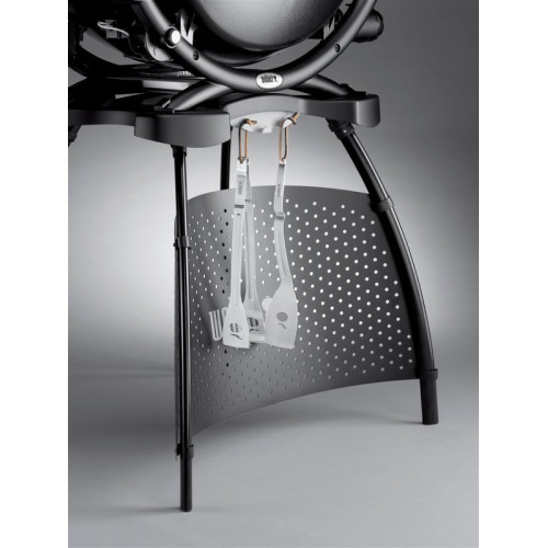 • Elegantní krycí zástěna: Přední textilní panel s logem Weber vkusně zakrývá plynovou kartuši nebo lahev uloženou pod grilem.