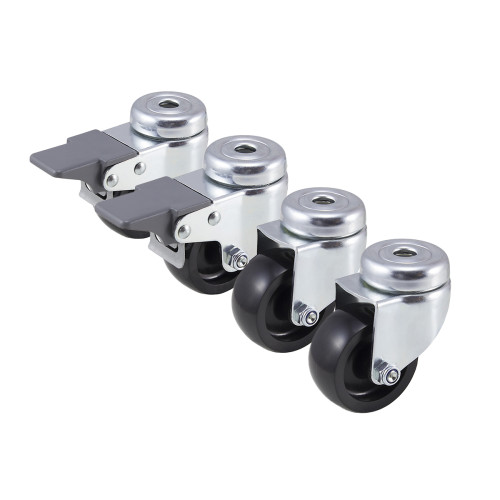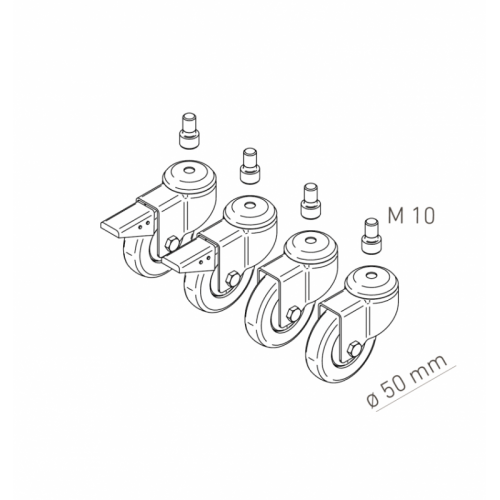 V sadě najdete dvě kolečka s brzdou a dvě bez ní.