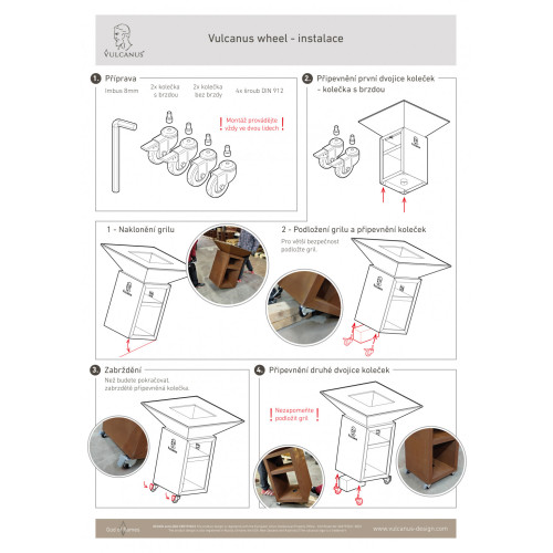 Usnadněte si přesouvání grilu. Díky sadě koleček s ním můžete pohybovat, kam se vám zlíbí. Namontování není nijak složité – všechny modely i pracovní pulty (tedy Camp, Chef, Masterchef, Butcher i Masterbutcher) jsou k tomu přizpůsobené.